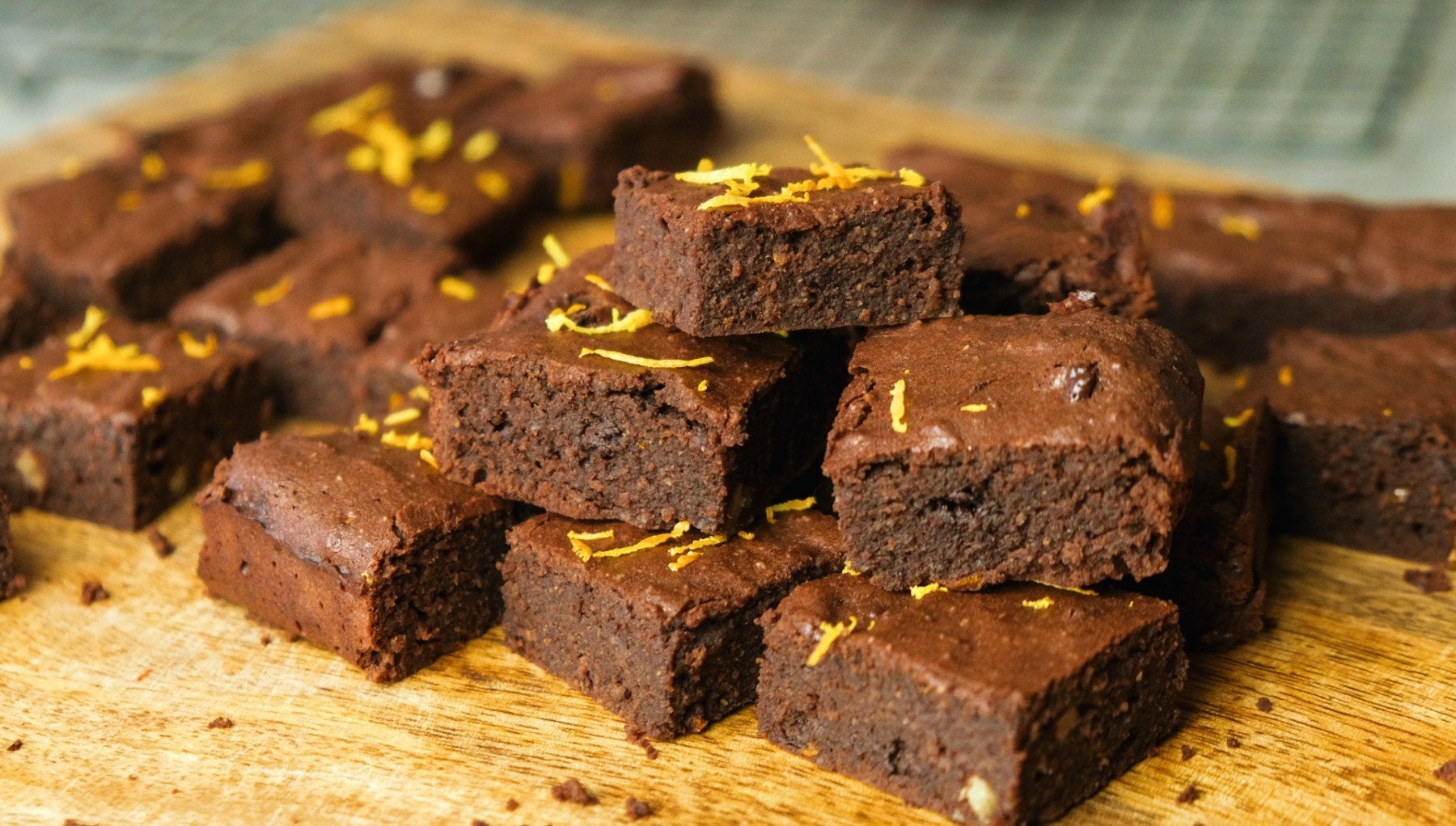 Niall Kirklands chokladbrownies med apelsin är enkelt att fastna för och resultatet är mer än värt det. Han använder sig av en stor mängd mörk choklad med apelsinsmak och kakaopulver för att ge dem en rik och mörk smak, tillsammans med lönnsirap för att ge en naturlig sötning och lite apelsinzest för en fräsch citrussmak. Himmelskt gott.