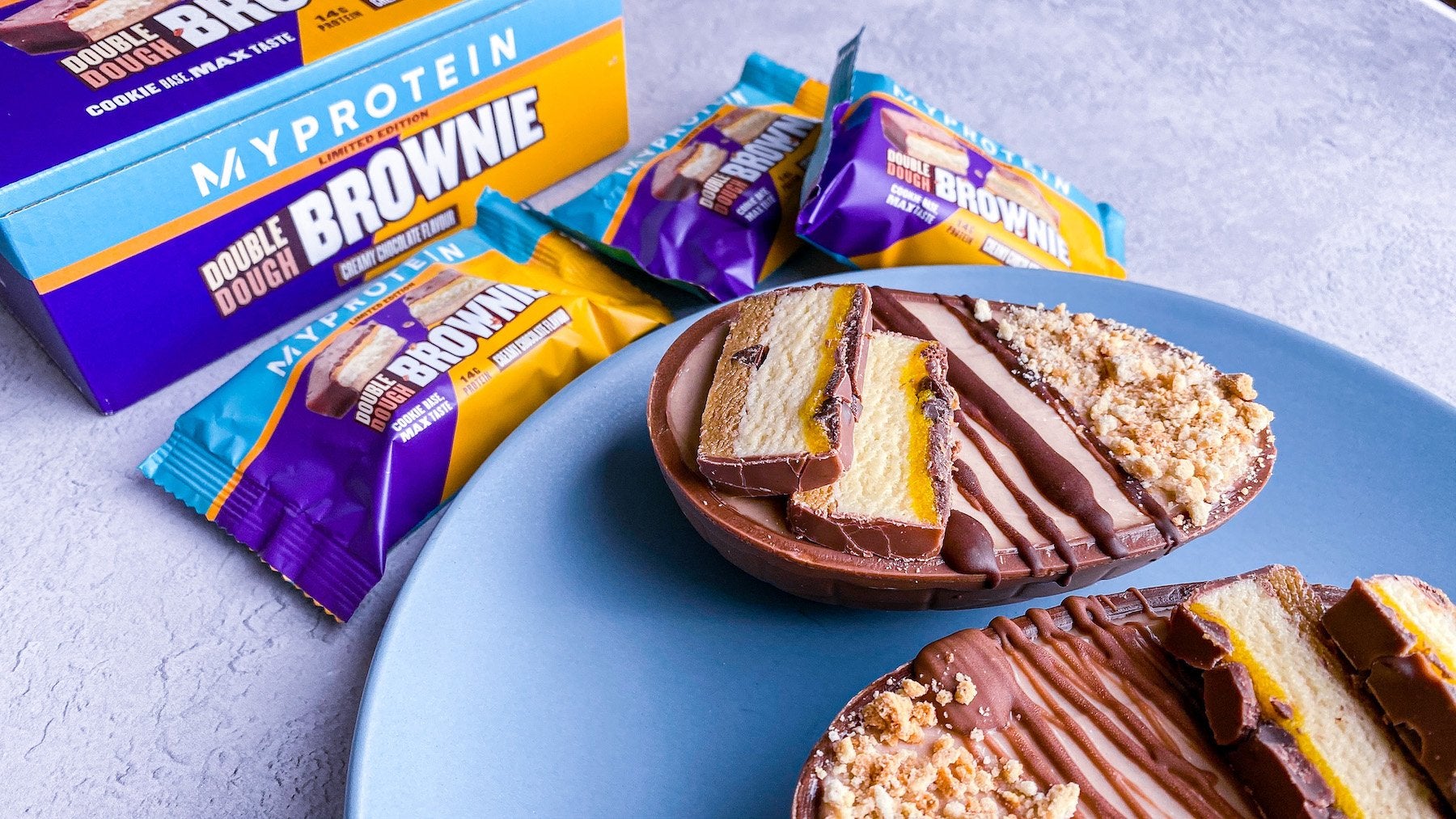 använder en low-fat creamecheese tillsammans med chocolate caramel Impact Whey Protein. Det skapar en len och söt fyllning utan ett överflöd av socker och fett. Den är sedan toppad med vår alldeles nya Double Dough Brownie i limited editionsmaken creamy chocolate - den levererar ännu fler lager med en otrolig smak och konsistens, tillsammans med 14 g protein per bar.Det här är till 100% en påskdessert du behöver ha i ditt liv, lita på oss!