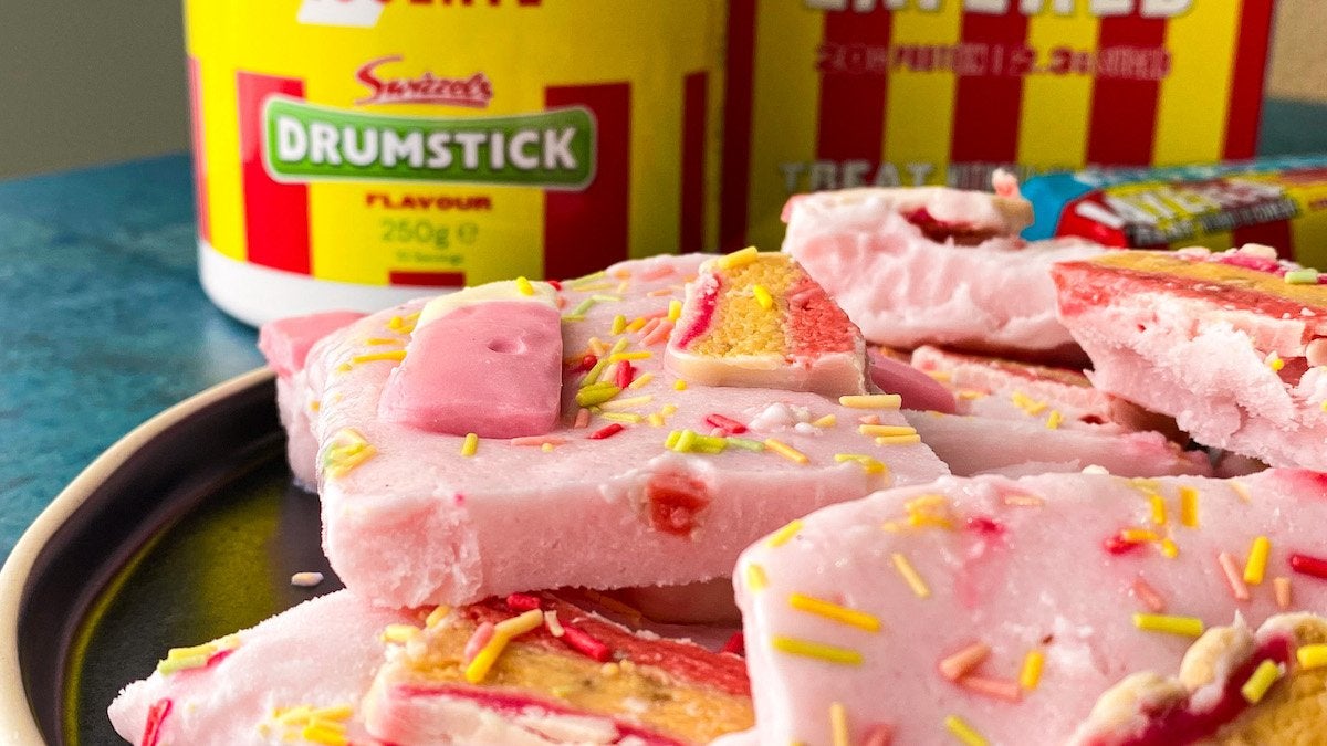 2. Toppa med skivor av Layered Bar i smak av Drumstick och om du känner dig extra sugen så tillsätt några Drumstickgodisar tillsammans med konfettiströssel.