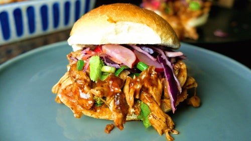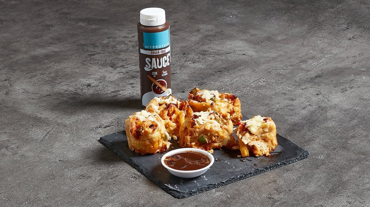Låt svalna i några minuter innan du försiktig skär ut varje pizzarullsbit. Servera med mycket BBQ Sugar-Free Sauce och avnjut!