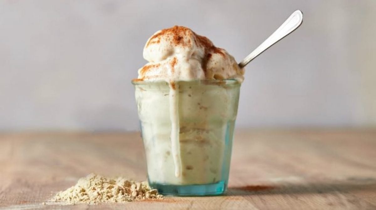 Allt du behöver för det här receptet på proteinglass är 4 enkla ingredienser och 30 sekunder.