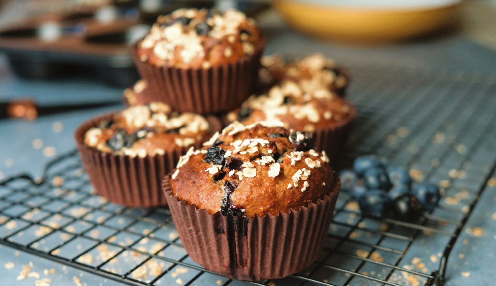 - Toppa dina muffins med några blåbär till och strö över de rostade havregrynen, baka sedan i 30 minuter.