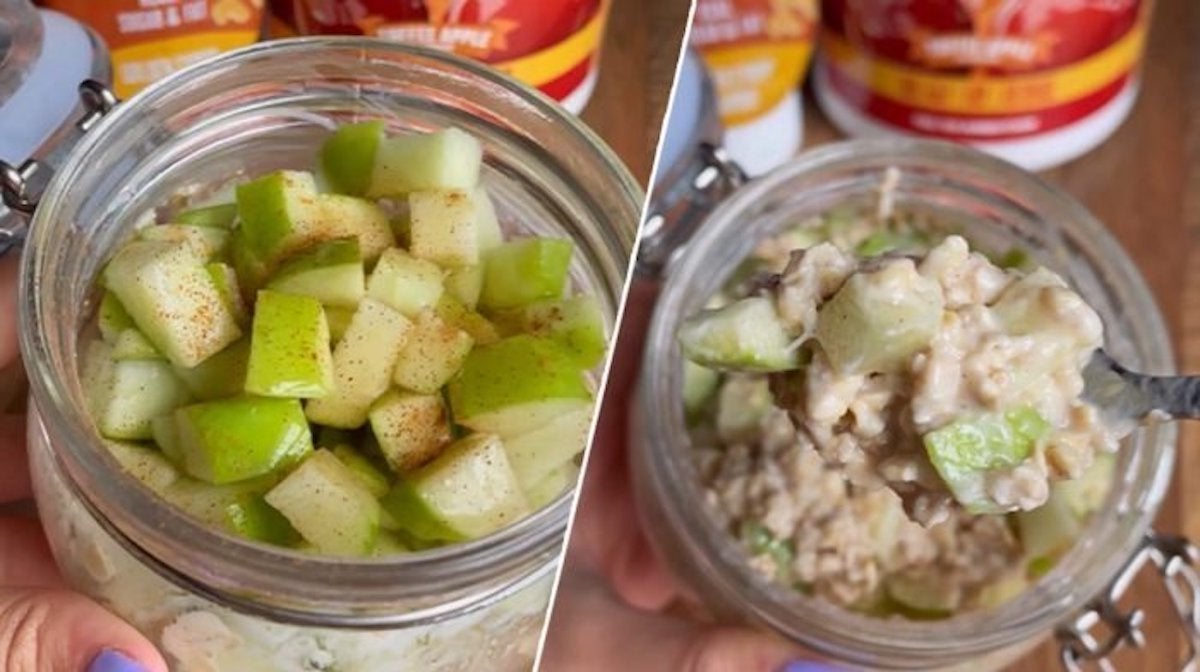 Det här enkla receptet för overnight oats som @kirstyfletcher_ har gjort innebär att du kan njuta av den oemotståndliga smaken av kanderade äpplen i en näringsrik frukost men utan allt socker. Börja dagen med en stor dos av nästan 30g protein, det finns inget bättre sätt att fylla på kroppen med energi innan du ger dig i kast med dagen. Förbered helt enkelt allt kvällen innan och ta med dig när du sedan gått upp - perfekt om du bara har någon minut till övers på morgonen. Vårt råd är att du gör en stor sats och förvarar i lådor i kylen, då är du förberedd för veckan.