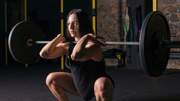 - Tryck ner i hälen samtidigt som du använder rörelsekraften från dina ben för att lyfta hanteln, innan du sedan skapar en stötande rörelse upp i luften.
